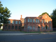 The former American Buckle Company plant is comprised of roughly nine primary adjoining blocks located on the east side of Campbell Avenue, approximately 115’ north of Campbell Avenue’s intersection with Walnut Street. Two of the blocks were erected as part of the original mill in 1885. They consist of a two-story, 28’ x 100’ red brick manufacturing block, which has a two-story, 28’ x 26’ cross-gable ell on its north (side) elevation. The primary block has rectangular window openings with heavy stone lintels, a corbelled brick cornice with cornice returns, and a front-facing gable roof. The ell was likely of similar detailing, however, it has since been enveloped by later additions and only its gable-end remains visible. A two-story, 28’ x 46’ red brick addition was erected on the northwest side of the intersection between the main block and the northern ell in 1903. This housed additional manufacturing space and has rectangular window openings with stone lintels on its west (facade) elevation, a mix of segmental-arched and rectangular window openings (the latter with stone lintels) on its north (side) elevation, and a shed roof. Entries are located on both the west and north sides of the block with the northern door sheltered by a shed-roofed portico. Further additions to the plant were completed in 1915 when a two-story, 40’ x 45’ red brick block was built adjoining the north side of the factory, and a one-story, 50’ x 22’ red brick boiler house and manufacturing block was erected along the eastern (rear) elevation of the original mill. Both blocks have large rectangular window openings with concrete sills, lintels comprised of doubled courses of bricks laid in rowlock orientation, corbelled brick cornices, and flat roofs. Two two-story blocks were erected at the eastern end of the mill between 1917 and 1918. These measure 18’ x 40’ and and 63’ x 42’, respectively, and are constructed of terra cotta tile faced with stucco. The blocks are of plain styling and have flat roofs. The final addition to the plant was completed ca. 1940 when a one-story, 32’ x 34’ concrete block shipping and receiving area was built on the east side of the northern 1915 block. Like the 1917-1918 blocks, this has been faced with stucco and lacks decorative ornamentation. Two garage-style door openings and a single pass-through door are located on the block’s north elevation, while three gabled skylights formerly allowed light into the interior of the building.