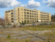 The former H. E. Verran Co. factory is located on the north side of West Main Street (US 1) near the Greenwich town line and encloses about 230,500 square feet. It was built in two phases, beginning with a five story daylight factory loft built in 1924 for silk manufacturing. The 1924 main block was L-shaped in plan, with two identically massed wings, a south wing parallel to West Main Street and a west wing extending northward from the south’s west end. Each wing was approximately 76 x 365 feet in plan, built with a reinforced concrete frame clad with buff brick on the exterior. The piers project at the corners and centers of the elevations below pedimented parapets to suggest pavilions with buttresses. Between the pavilions, the pier buttresses project with a shallow reveal beyond the plane of the spandrels to the fourth story. All buttresses terminate in simple, shallow cast stone weatherings. Fenestration within the pavilions consists of a door openings on the south elevation enframed with precast rectilinear classical surrounds. Elsewhere, the pavilions have single window opening per floor. The wall areas between the pavilions have large window openings spanning between piers above narrow spandrels. Window openings have slate sills and flush steel lintels. The original core was reduced in size by the demolition of 10 bays of the original west wing after 1970. The building’s plan attained an overall u-shape configuration with the phased addition of a three-story east wing and smaller special-purpose buildings within the resulting court between c.1936 and c.1965 during its use as a chemical research lab. The footprint of the east wing as built was similar in footprint to the west wing and continued the bay division of the earlier building. The east wing has two full width stories below a monitor-like third floor structure (possibly originally a greenhouse) and terminates in a three story pavilion without pedimented parapets. Within the court is a group of one- and two-story rectangular planned buildings including a powerhouse with a tall stack.