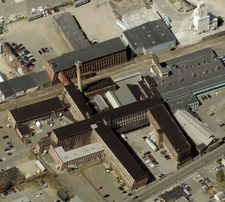 In the 1830s, having witnessed the complex manual process of making pins, Ridgefield native John Howe (1793-1876) patented a machine to make common pins. He established the Howe Manufaturing Co. in 1833 in New York, moving to Derby c.1836, and worked on improving the machine. Eventually, he also automated the pin packaging process. Howe collaborated with the Waterbury firm Benedict and Burnham to establish the American Pin Company in 1846. The first American Pin factory was located on East Main Street, but in 1894 the factory moved to a new complex in the Waterville section of Waterbury. The American Pin Company was one of two dominant pin makers in the Naugatuck Valley in the 19th century, the other being the Oakville Pin Company. In 1923, both brass-using companies were purchased by the Scovill Manufacturing Company which had prospered during World War I through its production of ordnance, especially brass shell casing, and military uniform buttons. Scovill operated the American Pin Company successfully through World War II, but by the 1950s the pin making industry in Waterbury began to decline. Several waves of labor unrest swept through the company and its subsidiaries in the 1950s, the 1955 flood damaged the factory, and raw material costs were rising. By the mid-1970s, Scovill moved its operations to Georgia and closed the Waterville plant. Since then the building has been occupied intermittently by non-industrial tenants.