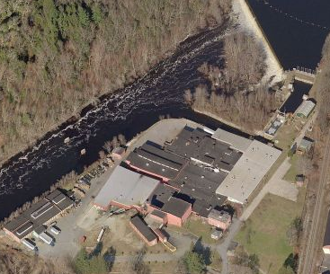 The former Aspinook Company mill is a sprawling complex comprised of approximately 18 primary adjoining and detached buildings located at the northern terminus of Anthony Street and along the east bank of the Quinebaug River. The plant stands directly west of a rail line formerly operated by the Norwich and Worcester Railroad, and immediately south of Aspinook Pond, the latter formed by a 475’-wide stone dam that originally powered the plant and which is currently used to produce hydroelectric power. The core of the plant is comprised of a group of roughly 14 adjoining one- to three-story red brick, concrete block, and steel-frame buildings erected between 1893 and ca. 1995. These measure approximately 420’ x 450’ overall and have a mix of low-pitch gable, flat, or shed roofs. Additional buildings associated with the plant are scattered across the property and include both manufacturing blocks or secondary structures. The most notable buildings associated with the former Aspinook Company mill are a two-story, 40’ x 65’ red brick office building erected ca. 1930; a three-story, 74’ x 76’ red brick storage building erected ca. 1930; a one-story, 108’ x 172’ red brick bleach house erected in 1893; and a one-story, 245’ x 78’ red brick manufacturing building constructed ca. 1930. The latter is the only of the aforementioned buildings not adjoining the main plant and it stands roughly 60’ to the southwest along the east bank of the Quinebaug River. Like the bleach house, this building has a low-pitch gable roof dominated by clerestory monitors (all infilled).