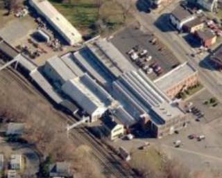The former Baird Machine Company building is located north of Stratford Avenue and west of Rachel Drive in Stratford, Connecticut. The complex sits just south of the railroad tracks, and originally had its own rail yard.