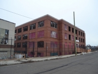 The former Bridgeport Brass Company plant is comprised of eight adjoining and freestanding primary blocks located on the east side of Housatonic and East Washington Avenues, north of Grand Street and south of East Washington Avenue’s intersection with Lindley Street. The oldest surviving portion of the sprawling mill complex consists of a three-story, 595’ x 336’ steel-frame rolling mill built at the northeast corner of the intersection of Housatonic Avenue and Grand Street in 1937. The building has a concrete foundation, red brick first-story apron walls, large expanses of steel-frame and glass walls on the upper stories, and a flat roof with 10’-tall clerestory monitors. The second- and third-story exterior walls have recently been sheathed with corrugated metal siding, thus obscuring the majority of the original window openings. A one-story ell links the 1937 building with a second rolling mill, this erected immediately south of the 1937 mill ca. 1942. The latter building is a three-story, 528’ x 158’ steel-frame block with a concrete foundation and first story, red brick apron walls, and large expanses of steel-frame and glass walls on the upper floors. The upper stories have been partially sided with corrugated metal sheathing, however, the majority of the window openings remain intact. The building has a flat roof topped by ten clerestory monitors. A four-story office and laboratory building stands immediately south of the ca. 1942 rolling mill. The office and laboratory was originally built in 1937, and then was expanded through the addition of a four-story ell on its south side in 1941. The building fronts on Grant Street and measures roughly 120’ x 150’, not including two one-story garages adjoining the north and south sides of its east elevations. Both phases of construction have steel frames, red brick apron walls with red brick stringcourses dividing each floor, large rectangular window openings with multipane steel sash, and a flat roof. The primary entrance to the building is accessed via a concrete bridge with concrete half walls leading from Grant Street to one-story brick and concrete entry pavilion. The entry consists of a wide opening flanked by fluted, quarter-round concrete pilasters topped by a concrete entablature. A four-story, 1,150’ x 160’ steel-frame rolling mill was erected roughly 500’ north of the 1937 rolling mill in 1953. The 1953 building has a concrete foundation, red brick first-story apron walls, a concrete stringcourse, alternating spans of translucent corrugated fiberglass and corrugated concrete panels on the upper stories, and a flat roof. The primary entrances to the building are located on the south elevation where there are several large bays with metal roll-up style doors. A four-story, 320’ x 80’ ell adjoins the building’s east elevation. This was likewise erected in 1953 and is of a similar design. The three final primary blocks of note associated with the plant are located immediately to the southeast of the 1953 rolling mill and northeast of the ca. 1942 rolling mill. These consist of a four-story, 70’ x 52’ boiler plant; a two-story, 124’ x 85’ manufacturing building; and a two-story, 124’ x 66’ warehouse. All of steel-frame construction with corrugated metal sheathing and they were erected ca. 1960, ca. 1960, and ca. 1975, respectively.