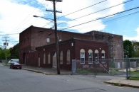 The Connecticut Breweries Co., Meriden Branch plant is comprised of three adjoining red brick blocks located at the southwest corner of the intersection of South Colony and Cherry Streets and along the east side of the New York, New Haven, and Hartford rail line. The most prominent block is the former fermentation and storage building, which is at the southeast corner of the plant with frontage along South Colony Street. The block was erected ca. 1887 and is a two-story, 47’ x 84’ red brick building with star-shaped masonry anchors and a three-bay façade. The latter is comprised of a garage-style door opening flanked by round arched windows on the first story and three evenly-spaced round-arched windows on the second, a denticulated cornice and stone beltcourse dividing the first and second floors, and a corbelled cornice spanning the brick parapet. All of the façade windows have corbelled brick hoods and stone sills. A three-story, 47’ x 71’ building formerly housing the brewery’s cold-storage tanks adjoins the aforementioned block’s west elevation and extends to the railroad right-of-way. The cold-storage block has star-shaped masonry anchors, segmental-arched window openings, and a flat roof. The third and final primary block associated with the plant is the brewery’s former office building, which adjoins the fermentation and storage building via a small one-story red brick ell. The office measures 52’ x 28’ and is six bays wide and four bays deep. It has a brownstone block foundation, red brick walls, round-arched door and window openings with stone sills, and a flat roof. Several of the window and door openings partially infilled with wood or Plexiglas panels.