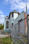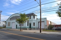 The Connecticut Company’s former Grand Avenue streetcar barn and repair facility is comprised of two primary adjoining blocks located on the south side of Grand Avenue, at the southwest corner of Grand Avenue’s intersection with Haven Street. The main and original block was erected ca. 1925 is a one-and-a-half-story brick pier structure measuring roughly 70’ x 210’ overall. It has a raised concrete foundation, large rectangular window openings with concrete sills, a plain concrete cornice (this also serving as the window lintels), a stuccod façade with an arched parapet and concrete cornice, and a front-facing gable roof with a 5’-tall clerestory monitor. The façade is of a generally symmetrical design consisting of a central garage-style door opening flanked by a large window on each side and with a large arched window in the gable end. A small pass-through door is located west of the garage door. A five-sided, two-story engaged tower with a cross-gable hipped roof is located at the northwest corner of the block set back roughly 7’ from the façade. This has several rectangular window openings with concrete sills and multi-pane metal sash, and a pass-through door with a multi-pane fanlight above. The facility’s second block adjoins the main block’s west (side) elevation. It is a one-story, 30’ x 194’ red brick building similar in detail to the main block. It has a plain stuccoed façade with a single load bay and a flat roof with three sawtooth monitors.