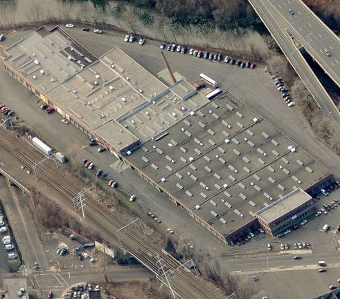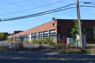 The Connecticut Company’s former James Street office, bus storage, and repair facility is comprised of five primary adjoining blocks located on the west side of James Street, at the southwest corner of James Street’s intersection with State Street. All five blocks were erected ca. 1948 and are of steel-frame construction with red brick apron walls, rectangular window openings with concrete sills, tile coping, and flat roofs. The easternmost block is a two-story, 124’ x 42’ office building that is 16 bays wide and 5 bays deep. The windows consist of large multi-pane metal sash with pivot-style openings. The block’s main entry is located just north of center on the first story of the east (façade) elevation. This consists of a pair of wood and glass entry doors with a large three-light transom above. The facility’s bus garage adjoins the west elevation of the office block. It is a one-and-a-half-story, 302’ x 332’ building that formerly housed up to 350 buses and a tire repair workshop. The block has four large window openings on each side of the east elevation flanking the office block and 18 garage bays extending along each of the north and south (side) elevations. The majority of the bays retain their original doors, which are of wood and glass paneled construction. Dozens of multi-pane wire-glass skylights dot the roof of the block. A one- and two-story, 252’ x 84’ block adjoins the garage’s west elevation. This formerly housed the facility’s repair office, stockroom, service shop, filling station, and boiler room. The block has a mix of garage bays, pass-through doors, and window openings on the first floor of the north and south elevations, and large window openings on all four elevations of the two-story portion of the southern end of the block. Sawtooth monitors line the block’s roof. A one-story, 210’ x 168’ block adjoins the west elevation of the office and repair block. This housed additional repair facilities and bus repair pits. The block has nine garage doors on each of the north and south elevations and sawtooth monitors scattered along the flat roof. The final block associated with the facility is a one-story, 156’ x 151’ building that formerly served as the facility’s body and paint shop. This has seven garage bays on each of the north and south elevations, and a mix of garage bays and window openings along the west elevation of the building. As with the neighboring block, sawtooth monitors line the roof.