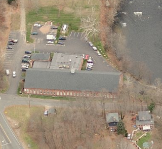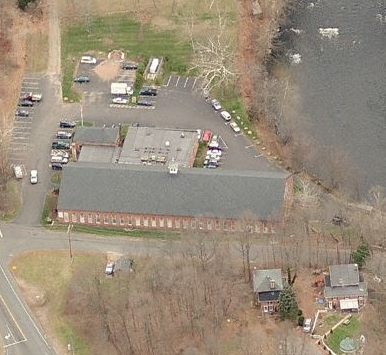 Tariff Manufacturing Co. first dammed the Farmington River at this site in 1824 to power its carpet and woolen mill. Orrin Thompson of the Thompsonville Carpet Manufacturing Co. bought the Tariff mill in 1840 and sold the property in 1867 after fire destroyed the factories and part of the village. Four c.1845 Greek Revival workers' houses are the only structures from the days of carpet production in Tariffville. Connecticut Screw Co. bought the property in 1867 and erected the brick-pier mill. Hartford Silk Co. bought the mill in 1881 and sold it soon after. Since then a succession of hardware and textile firms have used the mill. (Roth) Nearly 20 multi-family tenements also survive.