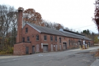 NOTE: TOGETHER WITH THE OTHER SCOVIL SITES THIS WAS FOUND TO BE ELIGIBLE FOR NR LISTING AS INDUSTRIAL DISTRICT IN 2022 BY SHPO. LISTED 7/2024. The D. and H. Scovil Company was founded by brothers Daniel and Hezekiah Scovil in 1844. Inspiration for the company came from Daniel Scovil’s extensive travel throughout the southern United States during the early 1840s, at which time he developed a design for a self-sharpening hoe to be marketed to southern plantation owners. Scovil’s ‘Planters’ Hoe’ was fabricated by forge-welding a soft iron overlay onto a steel core. As the tool was used the soft exterior would wear away more quickly, thus exposing the edge’s sharp steel interior. Upon returning to Higganum, Daniel partnered with his brother to produce Planters’ Hoes in their father’s blacksmith shop situated along Candlewood Brook. The success of the Scovil hoe allowed the brothers to build their own blacksmith shop in the vicinity of their father’s in 1849, and then to erect a larger mill and supporting waterpower system in 1859. The former no longer survives, however, portions of the 1859 factory, known as Mill No. 2, still stand west of Brainard Hill Road along Black Shop Pond. The D. and H. Scovil Company continued to thrive and expand throughout the second half of the 19th century. Mill No. 3, consisting of two new factory buildings, a Second Empire-style brick office building, and a rubble-stone dam, was constructed along what is now Scovil Road in 1867, and in 1880, the first of three primary buildings that would eventually comprise Mill No. 4 was erected along Candlewood Brook roughly one-half mile east of Mill No. 3. This was expanded in 1887 by the addition of the older of the two extant structures on the Mill No. 4 site, which originally housed a forge, woodworking, and grinding shops, a machine room, and an engine room. The second of the two extant mills was built ca. 1905 to house an additional forge shop. By 1914, Sanborn maps identify the building as a drop forge shop, perhaps indicative of machinery upgrades at the plant resulting from the company’s shift from welded two-piece models, to stamped single-piece designs after the turn of the century. Although the D. and H. Scovil Company’s productivity allegedly declined following the death of Hezekiah Scovil in 1904, the company maintained a presence in town into the second half of the 20th century. During the 1930s and 1940s, the company consolidated its production at Mill No. 3 after Mills No. 2 and 4 were sold off. Mill No. 4 was purchased by the State of Connecticut in 1942. The State’s Department of Transportation demolished the 1880 block and modified the 1887 and c. 1905 blocks for use as garages in 1945. The State of Connecticut continues to hold the property, currently unoccupied. Note: 2022 SHPO determined site to be eligible as part of an overall D & H Scovil Co industrial district; NR listed 2024.
