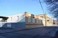 The former E.H. Hotchkiss Company plant is comprised of roughly six primary adjoining blocks located on the north side of Hoyt Street, roughly 200’ west of Hoyt Street’s intersection with Main Street. The oldest block associated with the factory was erected as a three-story Italianate style brick tenement building ca. 1880. A map from 1891 shows the building adjoining a three-story brick factory building (this demolished ca. 1955) occupied by Thomas Cousin’s shoe factory, suggesting that it may have been built specifically as worker housing associated with the neighboring mill. The tenement measures roughly 22’ x 62’ and it has rectangular window openings with stone sills and lintels, a prominent gabled cornice with heavy paired brackets and large dentils, and a flat roof. The tenement was converted for office and storage use ca. 1920. The E.H. Hotchkiss Company significantly expanded the Hoyt Street plant ca. 1930. It was at this time that the two-story, 135’ x 50’ yellow brick block was erected adjoining the west elevation of the tenement building. The new block housed factory space on the first floor and offices on the second. The building has a concrete and red brick watertable, an eight-bay façade of which the central six bays are delineated by yellow brick piers with concrete caps and framed by several courses of red brick, a stepped yellow brick parapet with a red brick cornice and concrete coping, and a flat roof. The large rectangular window openings consist of paired or tripartite pivot-hung sash with concrete sills and red brick lintels. Five of the façade (south elevation) windows on the second floor have prominent cast stone flower boxes with cast stone corbels and diamond-shaped detailing. The primary entry to the building is located in the second-to-last bay on the western end of the façade. This has a stone stairs, a prominent cast stone door surround that is embossed with the word ‘OFFICE’ above the doorway, and a flat-roofed cast iron marquis supported by highly detailed iron brackets and with a course of metal leaf and dart detailing along its roofline. The paired wood and glass entry doors are set back within the door surround. Further additions to the plant completed ca. 1930 include a one-story, 102’ x 48’ brick manufacturing block with a sawtooth roof that adjoins the north elevation of the office building, and a one-story, 102’ x 47’ brick garage and boiler plant with a flat roof adjoining the northeast corner of the office block and the north elevation of the tenement building. The final addition to the plant was constructed ca. 1960 when a one-story, 90’ x 88’ concrete block manufacturing building was erected adjoining the west elevation of the office block. This has a yellow brick façade that mimics many of the details of the office including a concrete and red brick watertable, rectangular window openings with concrete sills and red brick lintels, a red brick cornice, and concrete coping. The building has a flat roof.