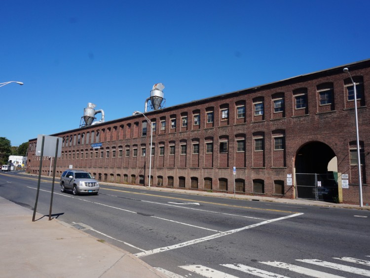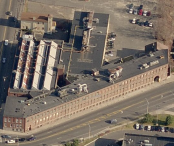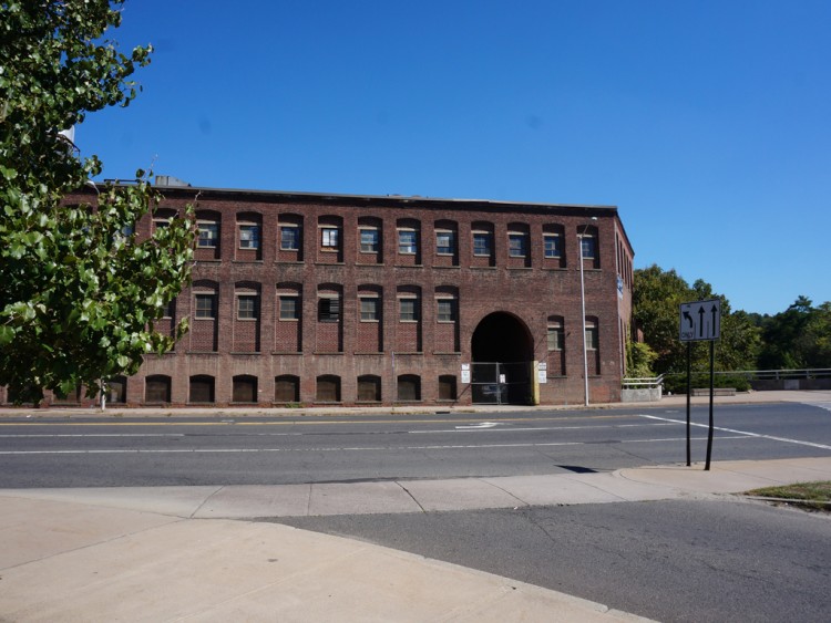 The former E.J. Manville Machine Company factory building is composed of three major blocks. The largest, two-story 1904 brick building with a wood structural system and flat roof, runs parallel to Brass Mill Drive and measures approximately 400 feet by 55 feet. The company offices were located at the northern end which is decorated with relief brickwork along the roof line. There is also a large brick archway and tunnel that allowed vehicles to pass through the front of the building into the back courtyard of the complex. A two-story rectangular brick and steel structured building with saw tooth skylights, approximately 200 feet by 100 feet, dates to c. 1920. The most recent addition measures approximately 245 feet by 75 feet, and is a two-story steel building, likely from the 1970s or 1980s.
