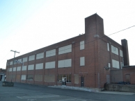 The former Eastern Color Printing Company plant consists of roughly seven adjoining and freestanding primary blocks located on the west side of Commercial Street, just north of Commercial Street’s intersection with West Main Street. The facility’s main block is located near the northern end of the plant and was built in 1938. It consists of a three-story, 250’ x 72’ block of brick pier construction and with a flat roof. The original windows are multipane steel sash with pivot-style openings, however many of these have been covered with aluminum sheathing or the openings infilled with red brick or stucco. A one-story red brick addition erected ca. 1945 adjoins the main block’s west elevation. The block has a curved western wall that mirrors the profile of the neighboring rail line and it extends past the northern end of the main block where a loading dock and several loading bays are accessible from Commercial Street. Two additional blocks erected ca. 1945 adjoin the main block’s south elevation, while two blocks built and occupied by the meat-packing firm Armor & Co. ca. 1920 have since been incorporated into the plant. A final two-story concrete block addition at the southwest corner of the plant was erected ca. 1980.