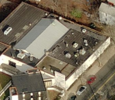Excerpt from HRI: The building was an existing early 20th-century 1-story structure with a traditional storefront facing Orchard Street. The New Haven Redevelopment Agency's plan for the area had a goal of removing non-conforming uses in what was to be solely a residential area; this business was allowed to remain as an exception to the policy because it was a strong local business and employer. The existing structure was wrapped by a new Modernist concrete masonry shell using a scored block pattern that epitomized the Modernist ideal of uniting functionality and decoration. Much as in the Hamilton-East Street industrial area, this material was a popular and economical alternative to traditional brick during the 1960s. Adjacent houses to the south were removed, making way for parking and loading access and allowing the building to be seen clearly from the intersection of Orchard and Goffe Streets.