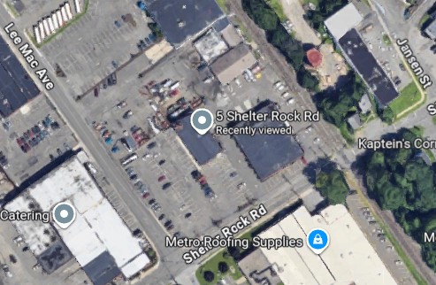 Set back on north side of Shelter Rock Road, about halfway between the railroad tracks to the east and Lee Mack Avenue to the west.