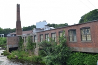 The Gilman Brothers Company plant is comprised of approximately sixteen primary adjoining blocks located on the east and west sides of Stanton Hill Road Extension directly north of its intersection with Gilman Road, and on the north and south sides of Thomas Road directly west of its intersection with Stanton Hill Road Extension. The complex stands on the north bank of the Yantic River and remnants of a mill pond and ruins of a dam that once spanned the Yantic River are located just west of the factory. The oldest surviving portion of the complex is a one-story stone structure located along the river. The block dates to the mill’s original construction in 1814 and measures roughly 92’ x 36’ overall. It has segmental-arched window openings with stone sills and lintels and a flat roof. A fire partially destroyed the plant ca. 1909 and a new red brick block was subsequently added adjoining the original building’s west elevation. This is one story in height and measures approximately 36’ x 100’. Further enlargement of the plant did not take place until ca. 1940, whereupon several new blocks were erected. Among these are an L-shaped red brick addition adjoining the east elevation of the 1814 mill. This is a one-story, 70’ x 70’ block with concrete foundation, a mix of flat and segmental-arched window openings with concrete sills and brick lintels, paired windows (these since replaced with modern units), and a flat roof. Another notable block erected during this period is a one-story, 122’ x 42’ stone building located adjoining the east elevation of the ca. 1909 block. This structure has rectangular window openings with concrete sills, multi-pane metal sash with hopper-style openings, and a side-gabled roof. Opposite this building, on the east side of Stanton Hill Road Extension, is a two-story warehouse likewise constructed ca. 1940. This measures 82’ x 40’ and is of concrete block construction. A ribbon window consisting of multi-pane metal windows with hopper-style openings spans the second story of the east elevation, while six garage bays are located below. Further enlargement of the plant was completed during the 1950s and 1960s, when a one-story red brick office building was built just north of the river on the east side of Stanton Hill Road Extension; and three two-story, red brick manufacturing blocks were erected at the northwest corner of the intersection of Stanton Hill Road Extension and Thomas Road. An additional factory building was constructed on the north side of Thomas Road during the early 1970s. This is a two-story, 282’ x 200’ steel-frame structure with both glass and brick curtain walls and a flat roof.