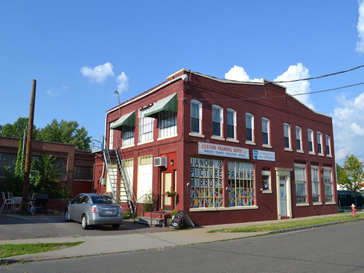 The former Hartford Steel Ball Company plant is comprised of roughly eight adjoining blocks located on the north side of Jefferson Avenue, approximately 150’ west of New Park Avenue. The oldest portion of the plant is a two-story, 60’ x 36’ red brick block located at the southeast corner of the complex. This was erected ca. 1916 and has a mix of rectangular and segmental-arched window openings with stone sills and double-hung or multi-pane metal sash with hopper-style openings, a denticulated brick cornice, stepped brick parapet with concrete coping, and a flat roof. The block’s primary entry is located along Jefferson Avenue, this consisting of a paneled wood door flanked by fluted pilasters and topped by a glass transom and tall entablature above. A one-story, 86’ x 130’ red brick manufacturing block was erected adjoining the north (rear) elevation of the original mill ca. 1919. This has largely been enveloped by later additions, however, large window openings with multi-pane metal sash and hopper style openings are visible on the south (front) elevation and two sawtooth monitors extend along the building’s roof. The majority of the aforementioned additions to the plant were completed between 1934 and 1950. These include three one- or two-story red brick blocks built adjoining the north and west elevations of the ca. 1919 block. The additions share similar details yet appear to have been erected in phases. All have concrete foundations, rectangular window openings with concrete sills and corbelled brick lintels, and flat roofs. Sawtooth monitors are found at various locations. The majority of the additions retain the original multi-pane metal sash with hopper-style openings, this most clearly visible in the two-story, 54’ x 32’ block located directly north of a one-story, 46’ x 30’ red brick block erected at the southwest corner of the factory between 1950 and 1965.