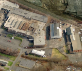 The former Holo-Krome Screw Corporation plant is comprised of roughly eleven adjoining blocks located at the eastern terminus of Brook Street and along the west side of the rail line running between New Haven and Hartford, Connecticut. The original portions of the plant includes four one- and two-story red brick blocks erected in 1936. These consist of the two-story, 144’ x 34’ office building; a one-story, 245’ x 160’ manufacturing block; a one-story, 154’ x 110’ manufacturing block; and a one-story, 78’ x 64’ boiler plant and hardening room. These share similar details including brick pier construction, rectangular window openings with either multi-pane metal sash with hopper-style openings or double-hung units, concrete window sills, brick parapets, concrete coping, and flat roofs. The office has a projecting two-story entry pavilion centered on its west (front) elevation, however, this was located offset to the northern side of the block until a two-bay addition was erected at the north end of the building at some point between 1950 and 1965. The larger of the two original manufacturing blocks has four large sawtooth monitors, while the boiler plant can be identified by its clerestory monitor. The plant was significantly enlarged between 1950 and 1970. As noted, a two-bay two-story addition was built adjoining the north elevation of the office, while one-story, 84’ x 62’ and 110’ x 230’ steel-frame manufacturing and shipping blocks with red brick apron walls and large ribbon windows was erected adjoining the southern end of the building ca. 1955. One-story, 222’ x 48’ and 378’ x 89’ precast concrete or concrete block additions were built adjoining the east elevations of the original manufacturing buildings ca. 1955 and ca. 1966, respectively, while the two one-story concrete block and brick additions at the northern end of the plant were built in 1971 and 1974. Together they form an overall footprint of roughly 202’ x 373’, with a 118’ x 110’ ell joining them to the remainder of the factory.