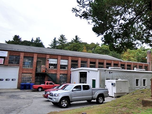 Located in the Jordan Village Historic District; from National Register narrative: 'One of the most historic sites in the village is the former 18th century grist mill, which was apparently in continuous operation from 1731 until destroyed by fire in 1905, at the falls of Jordan Brook where it enters Jordan Cove. An ashlar mill dam, elements of the head and tail race, and the random ashlar retaining/foundation wall on the north side of the cove survive. The frame grist mill was located at the end of a short street south of Rope Ferry Road, and the site has been redeveloped with a 2-story brick woolen mill built in 1920 of brick pier construction. The mill is well-preserved and is currently used for specialty manufacturing. The mill dam is crossed by a modern, pedestrian pony-truss bridge that connects the grist mill site with a small park of approximately 5 acres.'