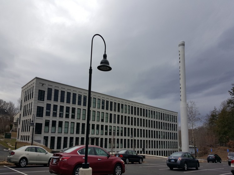 Located in the City of Rockville Historic District (1984). http://npgallery.nps.gov/nrhp/GetAsset?assetID=dbc02af8-eea0-4694-92fb-72190cecb3a7 This 5-story, 296' x 58' reinforced concrete structure, the last and the largest of Rockville's textile mills, occupies the furthest upstream water privilege in town. (Rockville grew in the 19th century around the dozen millseats on the Hockanum River just downstream from Snipsic, also known as Shenipsit, Lake.) Minterburn Mills Co. purchased several other mills in town before building this one in 1906, when it also merged with other Rockville producers to form Hockanum Mills Co. It employed 225 people to run 4,080 spindles and 68 broadlooms. The mill is unique in Rockville because it is still occupied by a textile manufacturer, Roosevelt Mills, founded in 1941. (Roth)