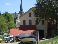 NOTE: DETERMINED POTENTIALLY ELIGIBLE FOR NR LISTING AS PART OF SMALL INDUSTRIAL DISTRICT (w/ 10 Bridge St, 9 Willow St, 35 Willow St) IN 2023 BY SHPO. The Morgan Silver Plate Company was organized in October in 1887 by James T. Morgan, who served as the firm’s general manager. The company built its own factory on the south side of the Mad River in 1887-88, which it occupied until closing c.1931. It specialized in casket hardware, which complimented the nearby Strong Manufacturing Company, a producer of undertaker’s implements and casket linings. In 1900, the two companies were slated for merger, but health problems within the Strong Manufacturing Company leadership caused the arrangement to fall through. Also in 1900, it acquired T. S. Carroll’s champagne tap business. In 1930, Morgan offered over 30 casket handle designs, in more than forty finishes, including gold, nickel, and silver plating. All of the hardware pieces continued to be wrought by hand, and only the plating process was executed on a large scale. The operation did not survive the onset on the Great Depression: at first Morgan outsourced its work to a Philadelphia firm, but shut down entirely c.1931. From closing until 1934 the building was home to a dog brush manufacturer called Kenley, but little is known about its occupants after that. Today the building is used as a marine repair facility. Note: 3/2023 SHPO determined complex to be eligible for listing as part of a small historic industrial district (10 Bridge St incl'g rear; 9 Willow, 35 Willow and possible 119 Willow).