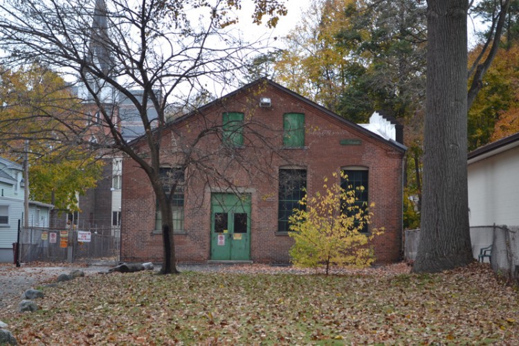 The former Naugatuck Electric Light Company’s Water Street generation station plant is comprised of two primary adjoining blocks located on the west side Water Street, roughly 375’ north of Water Street’s intersection with Cedar Street. Both blocks were erected in 1887 and stand one story in height. The main block measures roughly 56’ x 42’ and has a stone foundation, red brick walls, segmental-arched window openings with stone sills and double-hung wood windows, a corbelled brick cornice with cornice returns, and a front-facing gable roof. The building’s primary entry consists of a large rectangular opening with a stone threshold and sill, and paired metal doors. The secondary block adjoins the northern end of the main block’s west (rear) elevation. This measures roughly 32’ x 22’ and has two garage door openings with roll-up style doors on its south (side) elevation. A stepped red brick firewall extends across the north (side) elevations of both blocks.