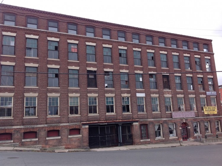 NOTE: DETERMINED ELIGIBLE FOR NR LISTING AS PART OF SMALL INDUSTRIAL DISTRICT (w/ 10 Bridge St rear, 9 Willow St, 35 Willow St and possibly 119 Willow St) IN 2023 BY SHPO. The New England Pin Company was organized in the Winsted section of Winchester, Connecticut in 1854. The firm was established by John G. Wetmore, a prolific industrialist and inventor, and by his management it expanded considerably during the second half of the 19th century. In 1880, the company added a paper box department to the business, which manufactured all of the boxes used by the firm in addition to supplying product to many other concerns throughout Winsted and the surrounding area. By the early 1890s, the company’s plant was the largest pin factory in the United States, and in 1892, the firm employed 60 hands capable of producing an average of 7,000,000 pins per day. At the same time, the box department employed 30 hands, most of these being young women. Much of the New England Pin Company’s market growth came through acquisitions. By the turn of the century, the company had acquired a number of competitors, among them being the Diamond Pin Company of Boston, Massachusetts; the Empire Pin Company of Cohoes, New York; and the Pyramid Pin Company of New Haven, Connecticut. The firm made considerable additions to its Winsted plant between 1900 and 1905, and by 1906 the workforce had increased to 125 hands. Total output averaged between 12,000,000 and 15,000,000 pins per day at the time, this requiring roughly one ton of raw material daily. The company’s product consisted of a wide variety of needle-pointed pins. These ranged between one-half of an inch and four inches in length and included office, bank, shawl, book, blocking, and hair pins sold under such brands as ‘Crown,’ ‘Victoria,’ ‘No Plus Ultra,’ and many others. The New England Pin Company continued to operate until 1926 when the firm merged with the Star Pin Company of Shelton, Connecticut and the National Pin Company of Detroit, Michigan. All of the business of the Winsted company was moved to Shelton following the merger and the plant remained vacant until 1928 when it was occupied by the newly-organized New England Flexible Door Company. This business remained in Winsted for just one year, however, before relocating to Hartford, Connecticut. In 1930, the mill was in turn acquired by the New England Knitting Company, a woolen underwear manufacturer that had occupied an adjoining factory complex on the west side of the New England Pin Company mill since 1887. The New England Knitting Company remained in business until 1955, whereupon the former New England Pin Company plant passed to a series of real estate developers who rented the space to small industrial firms or other assorted occupants. Note: 3/2023 SHPO determined complex to be eligible for listing as part of a small historic industrial district (10 Bridge St incl'g rear; 9 Willow, 35 Willow and possible 119 Willow).
