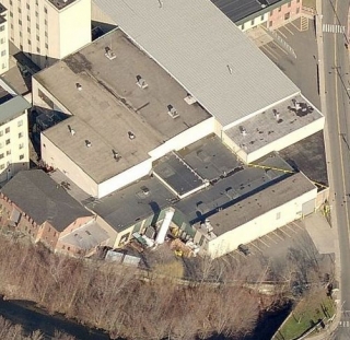 The oldest surviving building dates to between 1884 and 1894, and is not visible from the street. It is two-story brick with hip roof at the western end of the complex along the east bank of the Naugatuck River, and has a one-story brick flat roof addition to the south. The buildings to the east were likely built after a propane leak explosion and fire that destroyed most of the older structures in 1986. They are mostly concrete or corrugated steel structures. Until at least 1950, the property on which the complex sits was divided on a north to south axis by a headrace, which ran the factory’s waterpower systems until the late nineteenth century.
