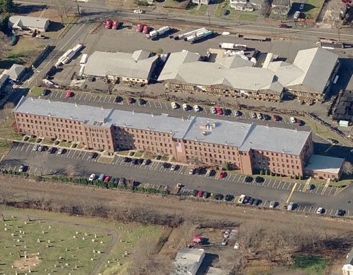 Wilson Sewing Machine Co. of Chicago buiIt the first section of this factory in 1883. It stands alongside the (former) Hartford Division of the New York, New Haven and Hartford Railroad. Wilson Sewing Machine failed after two years. In 1887 Metropolitan Rubber Co. and New York Insulated Wire Co. moved in. By 1897 New York Insulated Wire occupied the entire plant. (Roth)