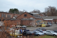 The former Omo Manufacturing Company factory complex consists of two clusters of adjoining buildings located at the southwest corner of the intersection of Walnut Street and River Road. The first group served as the manufacturing plant and is comprised of an adjoining group of five identifiable blocks built between ca. 1865 and ca. 1960. The second cluster served as warehouse space and includes four one-story blocks erected between ca. 1920 and ca. 1960 located to the southwest of the factory buildings. The blocks comprising the manufacturing section of the plant consist of a mix of one-, one-and-a-half-, and two-story blocks with red brick walls and flat or gable roofs. One of the earliest is a two-story foundry building (this used for storage by the Omo Manufacturing Co.) located at the northwest corner of the plant. This was built ca. 1880 and measures 82’ x 54’. It has segmental-arched window openings, a brick cornice with cornice returns, front-gabled roof, and a shed-roof monitor on its western elevation. The foundry is connected to a long two-story block running north-south along Walnut Street by various one-story brick blocks erected throughout the early-to-mid 20th century. The two-story block lining Walnut Street was originally built as two one-story buildings ca. 1880 and 1889. These were raised to two stories in height around 1905. The resultant building, used for finishing, sewing, and packing, appears as a singular, 46’ x 226’ red brick block and has segmental-arched window openings, paired four-over-four or six-over-six double-hung wood sash, brick cornice, and flat roof. The façade is capped by a corbelled brick parapet with tile coping, and a two-story, 18’ x 52’ red brick office block with denticulated water table and cornice is located adjoining its southeast corner. Remaining blocks throughout the complex include areas formerly used at various times for the milling, curing, drying, cutting, vulcanizing, compounding, coating, painting, and storage of rubber products.