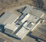 The entire complex has been sheathed in aluminum siding, however, the forms of the nineteenth century structures can be seen in aerial views, and brownstone foundation and brickwork can also be glimpsed in places.