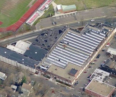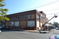 The former Rockbestos Products Corporation plant is comprised of roughly five primary adjoining blocks located on the east side of Nicoll Street, opposite Nicoll Street’s intersection with Canner Street. The main and original block was erected in 1920 as a one-story brick pier factory measuring roughly 210’ x 484’ overall. The building has a raised concrete foundation, large rectangular window openings with concrete sills and brick headers, a crenellated parapet with concrete coping, and a sawtooth monitor roof. The building’s primary entrance is located at the center of the west elevation. This consists of a highly detailed cast stone door surround with plain pilasters, a spayed entablature, wide frieze, and a pedimented and denticulated portico. A secondary entry is located four bays to the north of the main entrance. This has a plain door surround with concrete pilasters, frieze, and entablature. A portion of the southwest corner of the plant, this measuring 140’ wide and 108’ deep, was raised to two stories through the construction of an L-shaped office and laboratory addition ca. 1930. The addition is of a similar design yet has a greater degree of architectural ornamentation than the original block. A denticulated and corbelled red brick and cast stone cornice spans the façade and wraps around the corner of the building to extend along the first bay of the south elevation. The entire addition is topped by a plain red brick parapet with concrete coping. The majority of the window openings throughout the original block have been boarded up, however, the windows in the ca. 1930 addition remain visible. These consist of multi-pane metal sash with hopper-style openings. A pair of one-story gable-roofed storage buildings were erected adjoining the north elevation of the original block in 1957. In 1966, these were partially incorporated within a new two-story, L-shaped, flat-roofed addition erected adjoining the north elevation of the main block and extending north along Nicoll Street. The portion of the addition flanking Nicoll Street is 244’ wide and 64’ deep. The building extends 354’ east of Nicoll Street and is 102’ wide as it runs along the north elevation of the original plant. The addition is of concrete block construction and is broken into bays by recessed vertical courses of masonry. The concrete blocks show a small gridwork pattern on the exterior of the building, however, the addition lacks window openings. The portions of the 1957 blocks that remain visible measure 102’ x 58’ and 84’ x 56’. They have vinyl siding and side-gabled roofs with metal sheathing.