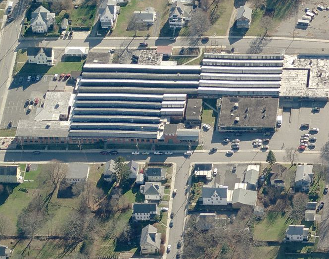 The Rossie Velvet Company was incorporated in New Jersey in 1897, yet began manufacturing operations in the Mystic section of Stonington, Connecticut, in 1898. The firm manufactured high quality velvet textiles and was operated by members of the Rossie family, who were also proprietors of a velvet mill based in Suchteln, Germany. Economic restrictions resultant of the McKinley Tariff of 1890 had driven the Rossies to seek out a manufacturing facility in the United States and the firm was drawn to Mystic by the then-recently-formed Mystic Industrial Company. The Rossie Velvet Company’s American mill met with immediate success and by 1911 the decision to open a second mill in the Willimantic section of Windham, Connecticut, had been made. The Rossie Velvet Company’s Willimantic plant was erected by and subsequently leased from the Willimantic Industrial Company, which had been organized specifically for the purpose of building a factory for Rossie Velvet. Work on the South Park Street plant began in February 1911 and was completed by June 1911. The company occupied the factory in August of 1911 and began operations with 20 looms and 25 hands. The plant was managed by a local superintendent, Andrew Roux, and from its initial construction was designed to accommodate upwards of 100 looms in addition to all warping, spooling, and finishing activities. By 1919, the mill employed roughly 200 workers. The Great Depression created significant financial difficulties for the Rossie Velvet Company and both the Willimantic and Mystic plants were closed in 1937. While the Mystic mill was reorganized as the J. Rossie Velvet Company, the Willimantic mill was not reopened. In 1939, the South Park Street plant was occupied by the Electro-Motive Manufacturing Company, a New York-based producer of radios and other electrical products and parts. The Electro-Motive Manufacturing Company expanded the former velvet mill and by the 1950s was the world’s largest producer of mica electrical capacitors. The firm remained in operation in Willimantic until 1975.