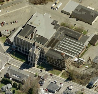 The industrial plant standing today on the site of Thomas's original shop includes buildings from 1850 and from 1915 and later. The 20th-century buildings replaced frame factories from the second half of the 19th century. The 1850 frame structures are: a 4-story, 102' x 86' factory; a 1-story, 200' x 32' factory; and a 1-story, 70' x 35' storehouse. The 1915 factory is a 4-story, 380' x 62' reinforced concrete structure with brick curtain walls. Offices, stairs and elevator were located in a semi-detached 51' x 51' block which is surmounted by a clock tower with pyramidal roof. Brick factories were added in 1934 and 1938. (Roth)