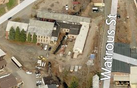 The former Starr Brothers Bell Company plant is comprised of an adjoining complex of four primary blocks located at the southwest corner of the intersection of Summit and Watrous Streets. The factory’s two original blocks were both erected ca. 1865 and consist of a one-story red brick foundry with granite foundation, cut granite sills and lintels, denticulated brick cornice, cornice returns, and front-gabled roof; and a one-story frame manufacturing block with red brick foundation, asphalt shingle siding, and a front-gabled roof. The two building’s measure 30’ x 100’ and 27’ x 160’, respectively, and intersect to form an L-shaped footprint. The original fenestration in the foundry has been replaced, however, some of the six-over-six double-hung frame windows in the manufacturing building still remain. Several one-story infill buildings connect the ca. 1865 blocks to two additional primary blocks, the latter erected ca. 1897 and 1900. The earlier of the two buildings measures 30’ x 72’ and is a two-and-a-half-story frame block with red brick foundation, six-over-six double-hung frame windows, asphalt shingle siding, and a front-gabled roof. A beam projecting from its northern gable end indicates where materials were once hoisted up to a loading door located on the second floor, this partially obstructed by the construction of the 1900 block. The final building associated with the Starr Brothers Bell Company plant is a two-story red brick block constructed adjacent to the northern elevation of the ca. 1897 block in 1900. This measures 40’ x 60’ and has a red brick foundation, full-height brick piers, segmental-arched window openings, six-over-six double-hung frame sash, and a low-pitch front-gabled roof. The primary entrance to the plant is located on the building’s northern elevation, this consisting of a segmental-arched opening with paired, paneled wood doors.