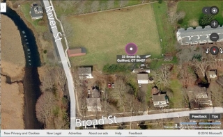 Located on an L-shaped parcel with the legal property address of 22 Broad Street. The location of the barn/mill is known as 213 River Street. The resource is in the Guilford Town Center Historic District.
