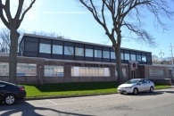 The former Sturm, Ruger and Company factory consists of roughly five adjoining primary blocks located on the north side of Post Road, at the northwest corner of Post Road’s intersection with Lacey Place. The plant fronts on Lacey Place and was originally built in 1958. The main block is a two-story, 320’ x 76’ steel-frame structure with a poured concrete foundation, large expanses of metal-frame ribbon windows, vertical aluminum siding, and a flat roof. A one- and two-story, 138’ x 26’ red brick and steel-frame office block also built in 1958 adjoins the center of the main block’s east (façade) elevation. The first story of the office block has a poured concrete foundation, red brick walls, ribbon-style window openings with concrete sills and metal sash, and flat roof sections. The main entrance is located in a recessed Art Deco-style entrance with paired aluminum and glass doors and a concrete frieze panel above the entry. A round plague set in the frieze bears the company’s logo, a red eagle bearing “SR” on its chest. Metal lettering along the block’s roofline south of the entry reads, “STURM, RUGER and CO., INC.” The second story of the office building is of metal-frame construction with vertical aluminum siding and a flat roof. Another one-story ell built in 1958 adjoins the southern end of the main block’s east elevation. This measures roughly 81’ x 20’ and mimics the construction details of the main building. The two final blocks associated with the plant were erected at the northwest corner of the plant in 1980. They consist of two adjoining steel-frame buildings with poured concrete foundations and vertical aluminum siding. The larger of the two blocks measures 42’ x 62’ and has a front-facing gable roof. The smaller block measures 26’ x 43’ and has a flat roof. It adjoins the north elevation of the larger 1980 building.