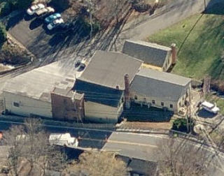 at southwest corner of Main Street and Monument Hill Road; Mill Brook runs west to east through complex