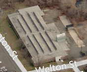 The former Snow-Nabstedt Gear Corporation plant is comprised of roughly six adjoining and freestanding primary blocks located on the east side of Welton Street, opposite Welton Street’s intersection with Atlas Street. All of the buildings were erected in or around 1942 and are of red brick construction. The most prominent block is a one-story, 150’ x 46’ Modern-style office building located on the western side of the complex facing Weston Street. The office has a concrete foundation, red brick walls, rectangular window openings with concrete sills, metal-framed windows with awning-style sash, concrete coping, and a flat roof. A projecting pavilion faced with concrete and with a tall concrete parapet is offset just south of center on the façade. This contains the primary entrance to the plant, which consists of an offset metal and glass door flanked by glass sidelights and with a glass transom above. The exterior of the pavilion bears a wide fluted pattern that rises to a wave-like detail running along the parapet. A round concrete Mo-Sai plaque is embossed in the concrete above the entry; this consists of the bust of a bearded mariner wearing what appears to be a rubber jacket and rain hat. The facility’s main manufacturing block adjoins the office’s east elevation. The former is a one-story, 126’ x 318’ red brick block with a concrete foundation, red brick walls, rectangular window openings with concrete sills, multipane metal sash with pivot-style openings, concrete coping, and a flat roof with eight sawtooth monitors. Three red brick accessory blocks adjoin the south and west elevations of the main manufacturing building. These measure 36’ x 215’, 93’ x 45’, and 52’ x 38’, respectively, and all have concrete foundations, red brick walls, rectangular window openings with concrete sills, multipane metal sash with pivot-style openings, concrete coping, and a flat roofs. A three-story steel-frame tower with fiberglass panel sheathing and a side-gabled roof rises from the accessory block adjoining the south elevation of the main manufacturing building. This was erected ca. 1970. The final block associated with the plant is a one-story guardhouse that stands roughly 60’ south of the office building. This measures roughly 8’ x 8’ and has a concrete foundation, red brick walls, rectangular window openings with concrete sills, multipane metal sash, a plain wood cornice, and a flat roof. The only entrance to the building is a wood- and glass-paneled pass-through door on the west elevation.