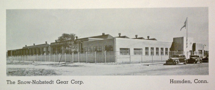 The origins of the Snow-Nabstedt Gear Corporation date to 1906 and the organization of the Snow and Petrelli Manufacturing Company. This firm was established in New Haven, Connecticut by Levi T. Snow and Joseph Petrelli and it specialized in the manufacture of reversing gears for four-cycle boat motors, as well as other special machinery and hardware. One of the company’s most notable and successful projects was a reversing gear known as ‘Joes Duplex Drive Gear,’ or ‘Joes Gears,’ which was developed in 1912 yet remained in production after various refinements through the 1940s. Joseph Petrelli remained with the firm until 1916, whereupon he took over as manager of New Haven’s Navy Gear Manufacturing Company. The title of the Snow and Petrelli Manufacturing Company remained intact however, regardless of the fact that Petrelli’s role as secretary and sales manager of the firm was assumed by Arthur T. Nabstedt, a university-trained engineer, upon his departure. The Snow and Petrelli Manufacturing Company initially occupied rental quarters on Chapel Street and then moved to Brewery Street before erecting a dedicated two-story red brick plant on Fox Street in New Haven in 1929. The firm maintained this facility until 1942 when the business was reorganized as the Snow-Nabstedt Gear Corporation and a new, larger plant was erected on Welton Street in neighboring Hamden. The expansion of the Snow-Nabstedt Gear Corporation’s business was largely driven by the outbreak of the Second World War and the rush of orders from the navies of the United States and its Allies that followed. The company supplied marine transmissions for a variety of military craft including minesweepers, landing craft, and the infamous P.T. Boats. The wartime work of the Snow-Nabstedt Gear Corporation earned the firm several Navy ‘E’ awards during the conflict and drove demand for the company’s products after the war’s conclusion. The Snow-Nabstedt Gear Corporation continued to operate in Hamden until 1970, whereupon the firm relocated to New Hampshire. The Welton Street plant has since been occupied by Entoleter, LLC, a manufacturer of impact milling, mixing, and air pollution control machinery and devices.