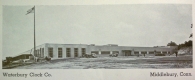The Waterbury Clock Company was originally organized in 1857 as an offshoot of Benedict and Burnham Manufacturing Co. in Waterbury. In 1922, Waterbury Clock Co. purchased R. H. Ingersoll and Brothers, a firm which produced a range of products sold for a dollar, including toys, typewriters and, beginning with an 1892 contract with Waterbury Clock Co., pocket watches. During World War I, the partnership produced the newly invented wrist watch, and when Ingersoll went bankrupt, Waterbury Clock assumed their marketing as well as production. In 1929, the firm acquired the rights to a new Walt Disney cartoon character, Mickey Mouse, and introduced the Mickey Mouse watch at the 1933 Chicago World's Fair; it was an immediate success. Starting in 1941, the firm was managed by two Norwegians fleeing Nazi occupation, Thomas Olsen and Joakim Lehmkuhl. Under their leadership, especially that of Lehmkuhl, an MIT graduate, the company became one of the largest military producers in the country and the largest time fuse producer during World War II. The Middlebury plant was built in 1942 in direct response to the United States' involvement in World War II, with government funds to fulfill contract orders for the production of bomb timing fuses, gyroscopes and other military products. The 120,000 square foot building was constructed on what was called Ingersoll Hill, in honor of R. H. Ingersoll and Brothers, by 700 workers in only 88 days, in order to supply the US military as quickly as possible. With air conditioning, humidity and dust control, and simulated natural light, it was considered one of the world’s most modern manufacturing facilities at the time. In 1944, the company name was changed to United States Time Corporation, and it began producing 'Timex' watches for nurses. The watch was marketed for general commercial use around 1950, becoming quite popular. In 1969, United States Time Corporation became Timex, reflecting the importance of that inexpensive and reliable wristwatch. Timex is now owned by a Dutch holding company.
