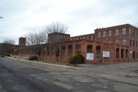 The earliest sections of the sprawling industrial plant lining the west side of Field Street were built for the Excelsior Needle Company in 1890. The Excelsior Needle Company was established in 1866 by five of Torrington’s most prominent figures, Achille F. Midgeon, Elisha Turner, Charles Alvord, James Wooding, and George M. Isbell. Their firm initially produced sewing machine needles in a small frame building in the Daytonville section of Torrington, yet quickly outgrew these accommodations after the company’s master mechanic, William H. Dayton, dramatically improved the Hopson and Brooks Company swaging machines (cold forging) that Excelsior Needle initially used in their manufacturing processes. Dayton’s improvements allowed the firm to dramatically expand production and in 1869 this necessitated the construction of a new plant on Church Street along the railroad. The Excelsior Needle Company moved into its new plant in 1871 after having increased its capital stock from $2,000 to $25,000. Once in full operation, the new factory was capable of producing upwards of four or five million needles per year, these purchased by every sewing machine company that did not manufacture needles in house. This success continued through the 1880s and 1890s, during which time the firm acquired a number of competing plants throughout the United States. In 1890, the need for even larger manufacturing quarters required the company to relocate again, this time to Field Street, where they erected a massive red brick plant with some 400’ of frontage and various wings and secondary buildings identified at the time to be large enough to house fair sized factories in their own right. In 1896, the Torrington Register noted that, 'The plant is looked upon as a model of mill architecture. It is modern planned throughout and while pleasing in its lines it is of most substantial character. The structural formation is such that evenly excellent light is afforded in all of its different rooms… It is the most advanced of needle-making plants; it is complete in itself, every part of the work is done on the premises and the raw material received as wire, leaves the establishment in the manufactured article, ready for the consumer or user.' By the late 1890s, the Excelsior Needle Company was producing a diverse array of sewing machine needles, knitting machine needles, and hook needles, as well as spokes and nipples for bicycle wheels. The Torrington plant employed between 650 and 700 workers, a number which increased to over 1,000 as the company expanded over the course of the following decades. In 1898, the Excelsior Needle Company was absorbed into the newly established Torrington Company of Maine, a holding company organized by executives associated with Kidder, Peabody and Company of Boston, Massachusetts, Excelsior’s majority stockholder. Despite the acquisition, the Excelsior Needle Company retained its corporate existence and continued to be operated by local managers. The same was the case after the formation of the Torrington Company of Connecticut in 1917, which maintained the factory as the Excelsior Plant. Excelsior continually expanded its Field Street factory through the 1920s, with final additions coming to the north and south ends of the complex in ca. 1940 and 1964, respectively. The Torrington Company maintained the Excelsior Plant until 1980, whereupon it was sold to Groz-Beckert, a German manufacturer of industrial needles, which subsequently closed its doors and laid off the 350 workers employed at the time.