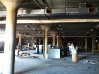 The four story concrete building with flat roof approx. 202 ft. by 430 ft. was built as a storage warehouse for UniRoyal in 1954 using Turner column construction. The northern section of the building was partitioned into offices and the exterior walls had aluminum frame windows separated by brick spandrels. The bays of the southern section of the building, with brick curtain walls, were punctuated by high narrow windows. Some original fenestration remains beneath the applied EIFS; other windows date to 1985. The warehouse was added to the southern end of the US Rubber complex which occupied the blocks west of Water Street, south of Cedar Street and east of what is now Old Firehouse Road, and is the only remaining building from the massive complex.