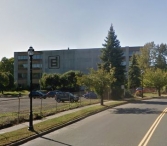 The four story concrete building with flat roof was covered in EIFIS (Dryvit) in the 1980s; this is a removable surface. Much original fenestration remains in place.