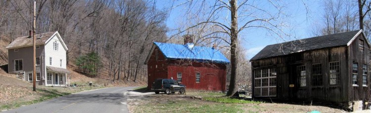 Originally location of saw/grist mill mid-18th century; burnt. By 1858, new mill built and occupied by Charles Wakelee for manufacture of plows. Business sold in 1897 to Bronson's of Roxbury. (courtesy Southbury Historical Society)