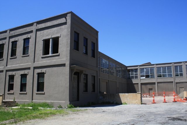 Little survives unaltered from the Bantam Ball Bearing Company’s occupancy from 1900 to 1926. The oldest structure is a c.1915 two story-concrete office building. Other, primarily concrete, buildings survive but were extensively altered by the Warren McArthur Inc., during World War II. The main reinforced concrete blocks have full bay steel (or aluminum) frame 36-pane windows, above which is a plain entablature.
