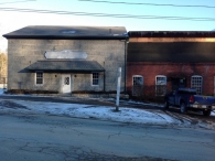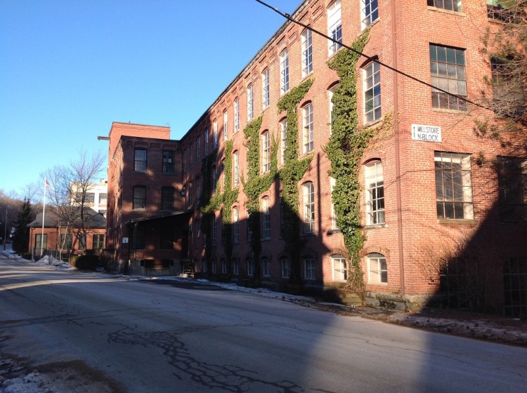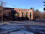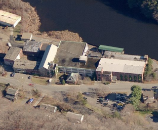 Extant buildings are the 1853 picker house, 2-story and 40' x 40' with near-flat roof, and the 1862 mill, 4 1/2-story and 120' x 38' with gable roof; the walls of both consist of granite blocks in coursed ashlar. Somewhat atypically, there is no stair tower on the mill, but the west end has freight openings at each floor. In 1883 Warren built a worsted-yarn mill, 4-story and 110' x 70'. It features brick walls, near-flat roof, segmental arch lintels and stone sills; the pyramidal roof of the stair tower has been removed. Around 1900 Warren built the brick, hip-roofed office building and in the mid-1920s erected the 3-story, flat-roofed reinforced concrete factory. Brick buildings have replaced the earlier frame structures used for dyeing, finishing, sorting and storage. The 1880s water power system includes an earth and stone buttress dam and 1,050'-long headrace; these structures supply process water, though not power, to the woolen mills. (Roth)