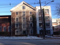 Converseville Co. produced woolens at this site from 1853 to 1879. In 1879 the newly formed Warren Woolen Co. bought the plant and revamped it to produce kersey and worsted coatings. William C. Avery, who had trained at Lowell's Middlesex Mills, served as the mill agent. Warren, under different ownership, still produces high-grade woolens here, as well as shags and tweeds of camel hair, alpaca and other natural fibers. Warren is the only firm in Connecticut that still manufactures woolen cloth using the entire process, from raw wool to finished cloth. The firm owns the 19th-century frame workers' dwellings above the mill on the east side of Furnace Ave. (Roth)