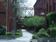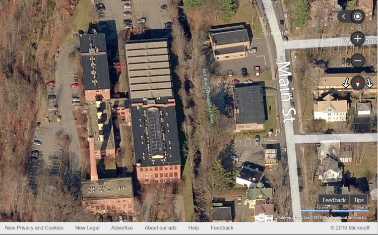 Set back from the east side of Main Street opposite Northridge Avenue, between the East Branch of the Naugatuck River and the railroad to the west