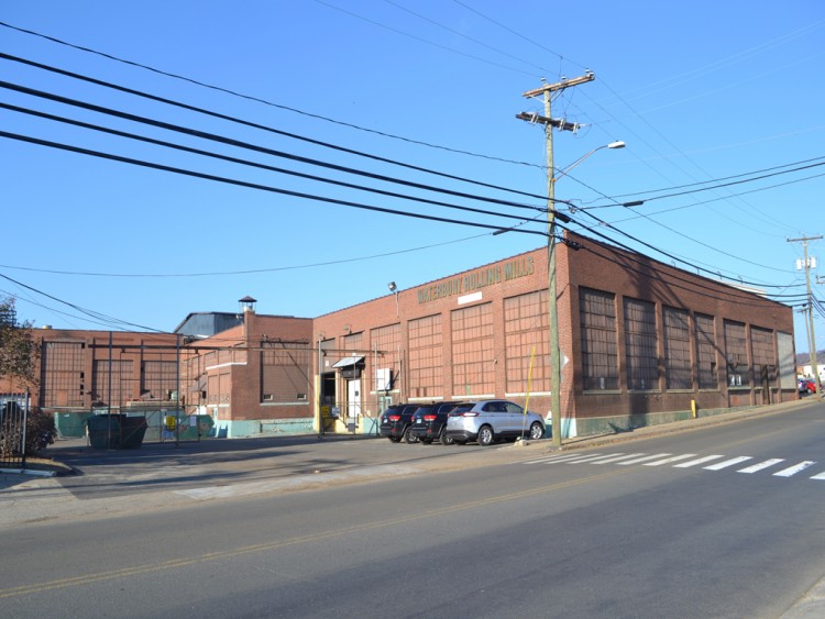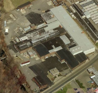 The former Waterbury Rolling Mills Company plant consists of roughly ten adjoining and freestanding red brick blocks located on the north side of East Aurora Street, just east of East Aurora Street’s intersection with Watertown Avenue (CT Route 73). Perhaps the most distinctive building associated with the plant is the main office, which is a freestanding, two-story, 44’ x 44’ red brick Colonial Revival style building located along East Aurora Street. The building was erected ca. 1917 has a concrete foundation, rectangular window openings with splayed red brick and concrete lintels, concrete window sills, a prominent concrete cornice with concrete modillions, red brick parapet, concrete coping, and a flat roof. A one-story red brick garage stands just west of the office building, while the remainder of the plant is situated to the east and north. There are roughly seven adjoining manufacturing buildings, these primarily built and expanded in various stages between ca. 1906 and ca. 1917. Two later additions were completed ca. 1930 and ca. 2000. A one-story red brick block located east of the office building was likely erected ca. 1908 and then expanded ca. 1930. The building formerly housed finishing and shipping operations and adjoined the plant’s main mill and furnace building to the north. To the north of the main mill is the former casting shop and foundry, beyond which there is a scrap storage block. The majority of the buildings have red brick walls with large rectangular window openings, concrete window sills, multipane metal sash with pivot-style openings, tile coping, and flat roofs. Several of the buildings have prominent clerestory monitors. The facility’s most recent addition, a two-story, 80’ x 400’ steel-frame block with corrugated metal siding and a low-pitch front-facing gable roof, adjoins the east side of the plant where the Watertown branch of the New York, New Haven, & Hartford Railroad once ran.