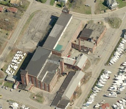 Clark Thread Mill Co. built the first of these buildings in 1891. The main mill is a 4-story, flat-roof, brick structure, about 200' x 55'. It has segmental-arch lintels, stone sills and a corner stair tower. Outbuildings include a 1 1/2-story, brick picker house and a 1 1/2-story, brick power house, both with gable roofs. The main mill was extended in 1899 with a 4-story, brick-pier addition, about the same length as the first mill but one bay wider and slightly taller. Its window openings are segmentally arched and sills are of cut stone. A 5-story stair tower rises at the southwest corner. Cornices of both tower and mill are corbeled. A 1-story, brick office building with hipped roof stands just west of the mill. (Roth)